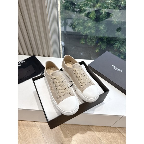프리미엄 디테일 퀄리티 다채로운 배색 디자인으로 세련되고 트렌디한 무드 프라다 특유의 실버로고 소가죽 인솔 & 전용 러버 아웃솔 겉감: 수입 캔버스 내피: 천연 가죽 사이즈: 35-40 ㅡ #신발