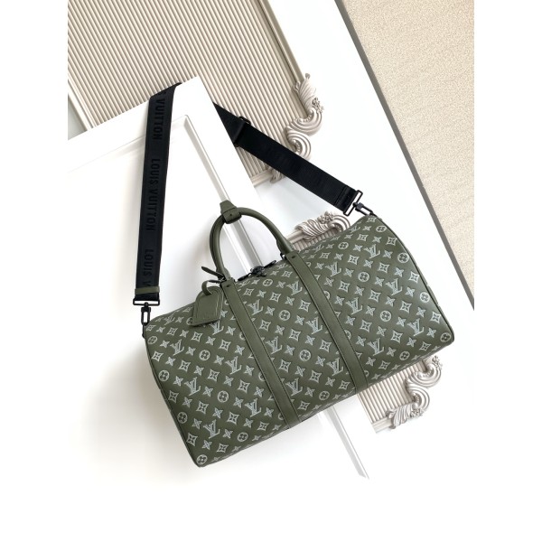 M12504 Bandoulière 50 여행용 가방 Monogram Shadow 엠보싱 소가죽 패브릭 안감 롤 가죽 핸들과 탈부착 및 길이 조절 가능한 숄더 스트랩 소재: 이탈리아산 A급 가죽 하드웨어: 수입 A급 올스틸 메탈 사이즈: 50.0 x 29.0 x 23.0cm (가로 x 세로 x 폭) ㅡ #가방
