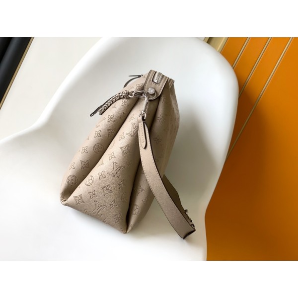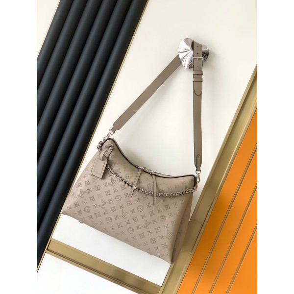 M24113 그레이 Mahina Hand It All 중형 숄더백 고급 송아지 가죽 소재, 섬세한 펀칭 디테일 탈부착 가능한 체인 & 가죽 꼬임 핸들 스트랩: 탈착 불가, 길이 조절 가능 (40~53cm) 체인 길이: 34cm (탈착 가능) 크기: 32 x 29 x 13cm ㅡ #가방