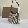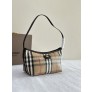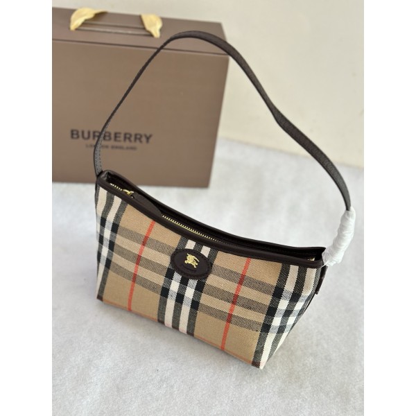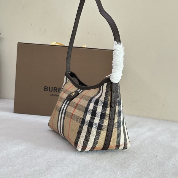 소재: 코튼-리넨 혼방, 스무스 송아지 가죽 트리밍, 코튼 라이닝 Burberry 클래식 체크 자카드 장식, 트렌치 코트 영감 코팅 디테일 라이트웨이트 디자인, 얇은 숄더 스트랩 기수 엠블럼 장식 가죽 패치 지퍼 클로징, 손으로 페인팅된 엣지, 브러시드 골드 메탈 디테일 사이즈: 25.5 x 12 x 16 cm (길이 x 폭 x 높이) ㅡ #가방
