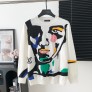 소재: 고급 이탈리아 수입 원단, 고밀도 니트 디자인: 라운드넥, 얼굴 패턴 특징: 내구성 강하고 변형 적음, 다양한 스타일 소화 가능, 오버사이즈 핏 컬러: 화이트 사이즈: S / M / L / XL ㅡ #의류