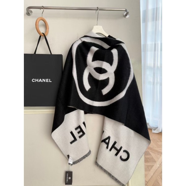 • Chanel 샤넬 대형 더블 C 로고 캐시미어 숄 케이프 스카프 머플러 목도리