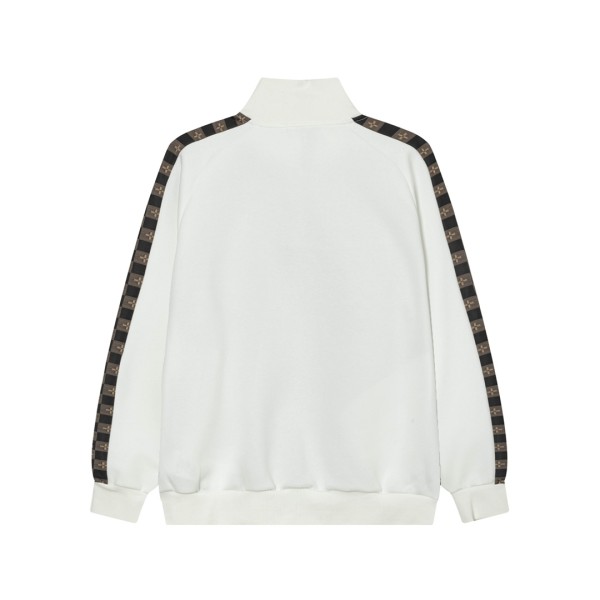 체커보드 패턴과 클로버+레터 배색 디테일 유니섹스 디자인, 루즈하고 편안한 착용감 데일리 캐주얼·커플룩 모두 활용 가능한 트랙 재킷 하이엔드 퀄리티 완성도 컬러: 화이트 / 사이즈: XS–L ㅡ #의류