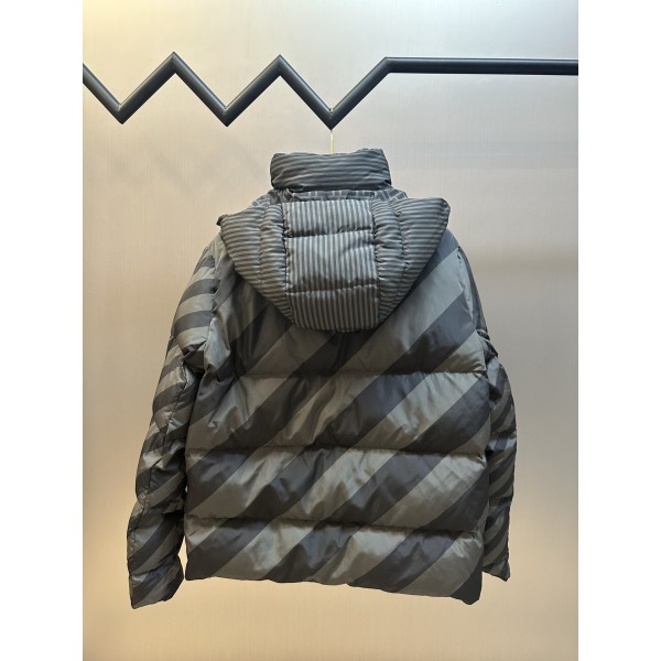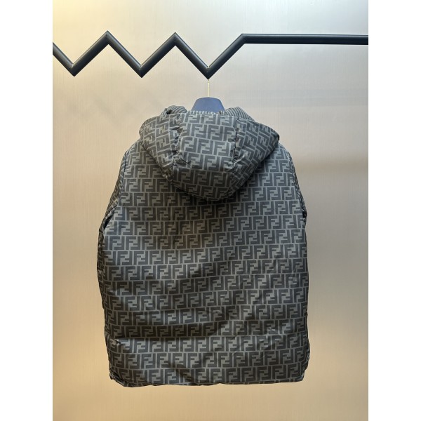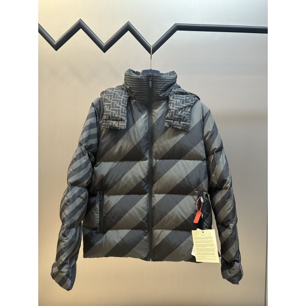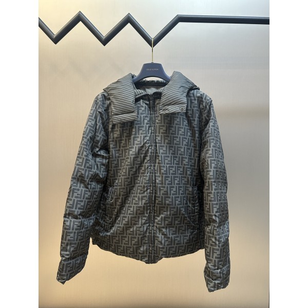 소재: 고밀도 광택 나일론, 신국표 90% 화이트 덕다운 충전 디자인: 양면 착용 가능, 한쪽 FF 로고 전체 프린트, 다른 쪽 동색 대각선 Pequin 스트라이프 제작: 컴퓨터 제어 충전·레이저 컷팅·디지털 직분사 프린팅, 정밀 공정 Size: 50 / 52 / 54 / 56 ㅡ #의류