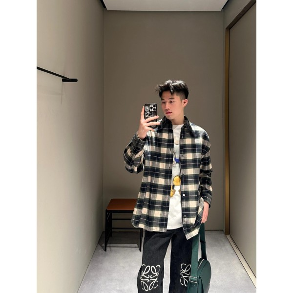 Loewe 로에베 체크 가죽 트리밍 셔츠 집업 재킷 자켓 의류 > 남성 아우터