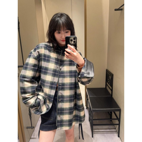 축융 플란넬 체크 원단, 로에베 패턴 전체 적용 카라·소매 가죽 디테일 남녀공용 컬러: 체크 사이즈: 38 / 39 / 40 / 41 ㅡ #의류