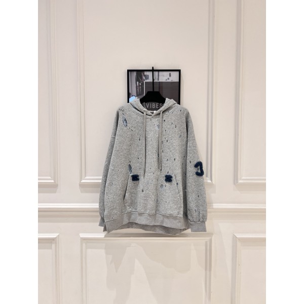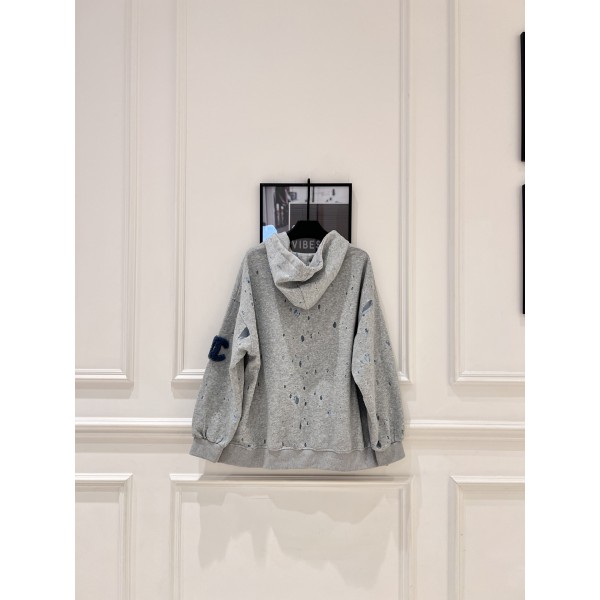 • Chanel 샤넬 빈티지 라인 그레이 디스트로이드 레이스 후드티 의류