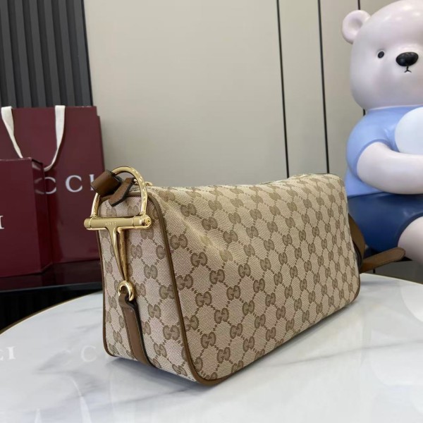 GG 캔버스(베이지/브라운) 골드톤 반마 디테일 지퍼 여밈 + 내부 오픈 포켓 조절형 가죽 스트랩 (숄더/크로스) 사이즈: 31.5 × 17 × 12cm 860787 가벼운 데일리용, 캐주얼·포멀 모두 잘 어울림 ㅡ #가방