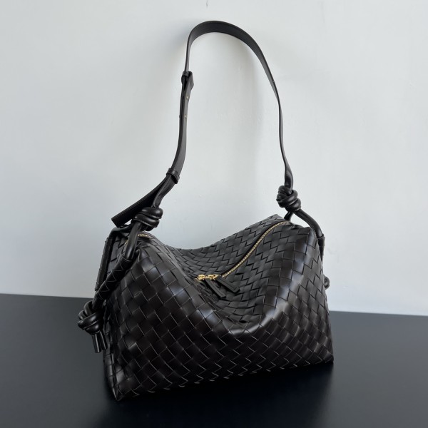 특징: 최신 버전으로 업그레이드된 가로형 직사각형 실루엣으로, 압도적인 수납력과 가벼운 무게가 강점 포인트: 시그니처 인트레치오 편직과 스트랩 양측의 아이코닉 매듭(Knot) 장식으로 브랜드 정체성 강조 활용: 캔버스 안감과 소가죽의 결합으로 형태가 부드럽게 유지되며, 여행 및 데일리용 극강의 실용성 선사 사이즈: 38x18.5x20 ㅡ #가방