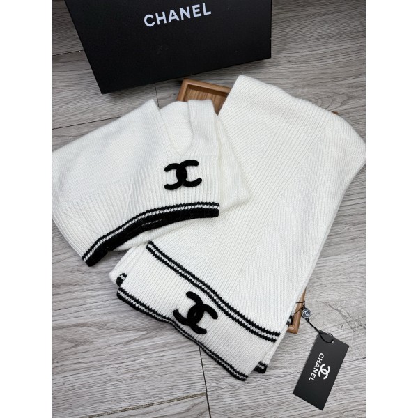 • Chanel 샤넬 울 & 토끼털 모자·목도리 세트