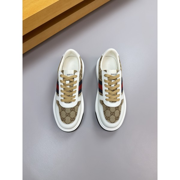 특징: 구찌의 상징인 **삼색선(Web)**과 브랜드 토템 캔버스가 조화를 이룬 클래식한 디자인입니다. 나파 가죽의 매끄러움과 구찌 고유의 자수 디테일이 합쳐져 럭셔리한 스포티룩을 완성합니다. 소재 및 공정: 겉감: 최상급 나파 송아지 가죽 + 브랜드 로고가 새겨진 프리미엄 패브릭 안감: 통기성과 터치감이 우수한 수염 소가죽 아웃솔: 초경량 TPU 발포 고무 투톤 대창을 사용하여 가벼운 착화감과 미끄럼 방지 기능을 갖추었습니다. 디테일: 신발 옆면의 정교한 삼색(웨빙) 마감, 설포(혀)의 브랜드 라벨, 뒤축의 고해상도 로고 프린팅으로 세밀한 부분까지 오리지널 퀄리티를 재현했습니다. 사이즈: 38 - 45 ㅡ #신발