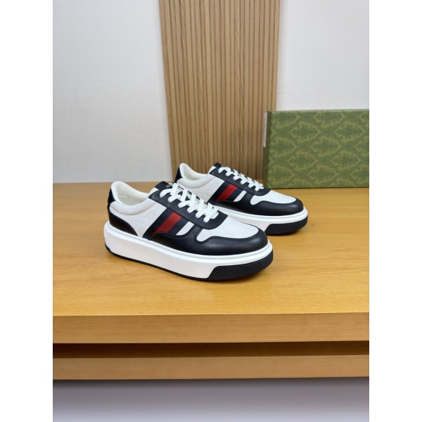 특징: 구찌의 상징적인 **삼색선 웨빙**과 브랜드 패턴 패브릭이 조화를 이룬 클래식한 디자인입니다. 나파 가죽의 매끄러운 질감과 구찌 고유의 디테일이 결합되어 럭셔리하면서도 스포티한 무드를 선사합니다. 소재 및 공정: 겉감: 최상급 나파 송아지 가죽 + 브랜드 로고가 새겨진 프리미엄 캔버스 조합 안감: 부드럽고 땀 흡수가 좋은 고급 수염 소가죽 아웃솔: 초경량 TPU 발포 고무 투톤 대창을 사용하여 무게는 줄이고 접지력은 높인 이중 구조 솔 디테일: 신발 측면의 정교한 삼색 웨빙 스티치, 혀 부분의 브랜드 전용 라벨, 뒤축의 고해상도 로고 프린팅으로 마감 퀄리티를 극대화했습니다. 사이즈: 38 - 45 ㅡ #신발
