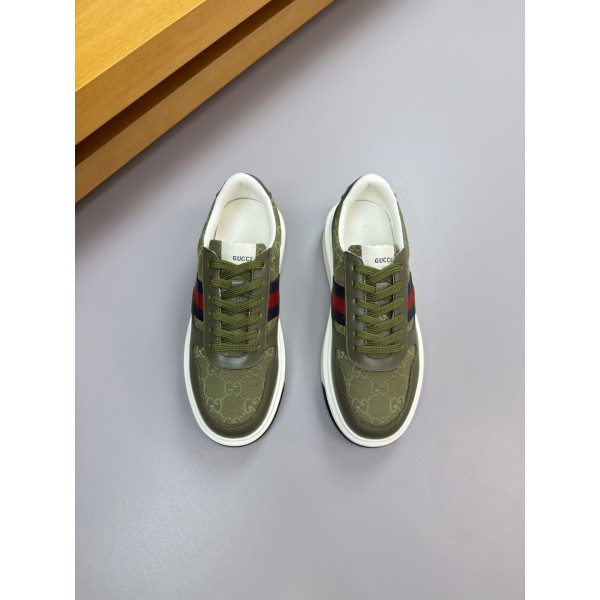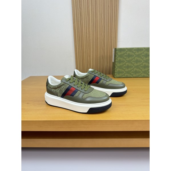 특징: 구찌의 상징적인 **삼색선 웨빙**과 브랜드 패턴 패브릭이 조화를 이룬 클래식한 디자인입니다. 나파 가죽의 매끄러운 질감과 구찌 고유의 디테일이 결합되어 럭셔리하면서도 스포티한 무드를 선사합니다. 소재 및 공정: 겉감: 최상급 나파 송아지 가죽 + 브랜드 로고가 새겨진 프리미엄 캔버스 조합 안감: 부드럽고 땀 흡수가 좋은 고급 수염 소가죽 아웃솔: 초경량 TPU 발포 고무 투톤 대창을 사용하여 무게는 줄이고 접지력은 높인 이중 구조 솔 디테일: 신발 측면의 정교한 삼색 웨빙 스티치, 혀 부분의 브랜드 전용 라벨, 뒤축의 고해상도 로고 프린팅으로 마감 퀄리티를 극대화했습니다. 사이즈: 38 - 45 ㅡ #신발