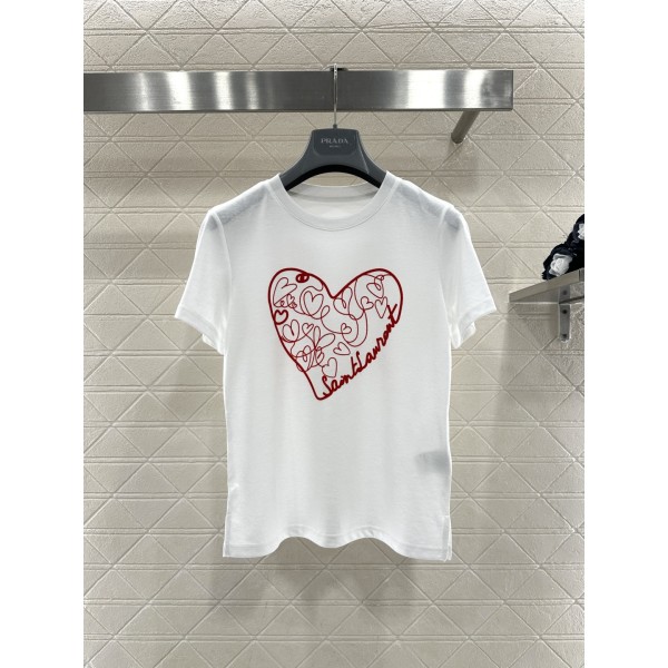 생로랑(Saint Laurent) YSL 하트 플로킹 로고 반팔 티셔츠 의류 > 여성 TEE& TOP