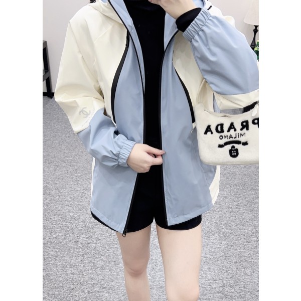 샤넬(CHANEL) 배색 후드 집업 바람막이 자켓 재킷 의류 > 여성 아우터