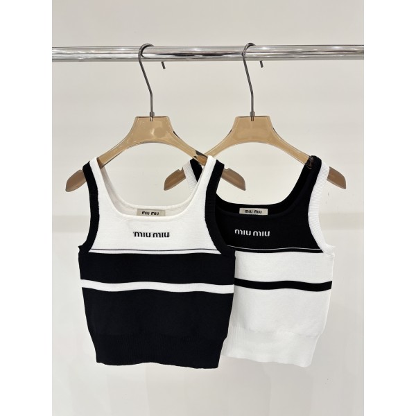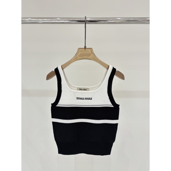 miumiu 미우미우 로고 핫픽스 배색 민소매 나시 니트 베스트 의류 > 여성 TEE& TOP