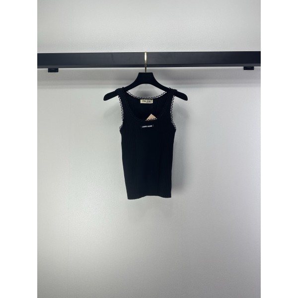 miumiu 미우미우 프릴 에지 니트 슬리브리스 펀칭 레이스 베스트 민소매 나시 의류 > 여성 TEE& TOP