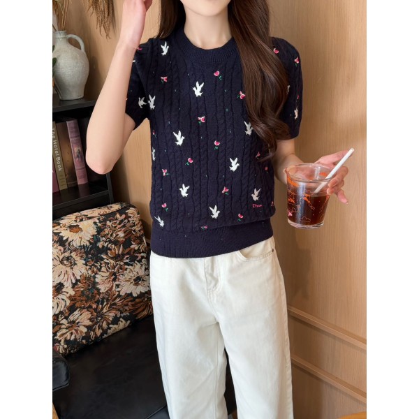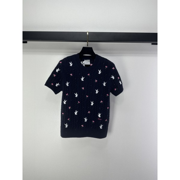 Dior CD 디올 스트로베리(딸기) 자수 포인트 니트 반팔 의류 > 여성 TEE& TOP