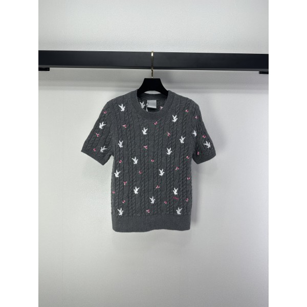 Dior CD 디올 스트로베리(딸기) 자수 포인트 니트 반팔 의류 > 여성 TEE& TOP