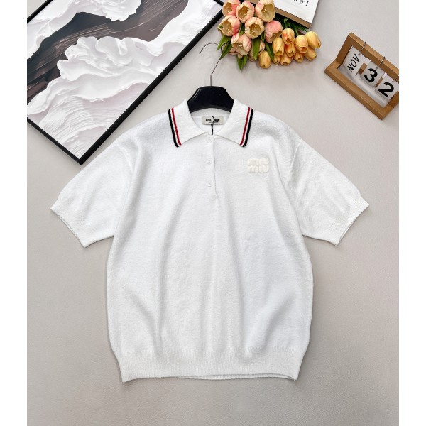 miumiu 미우미우 로고 자수 폴로 반팔 니트 의류 > 여성 TEE& TOP