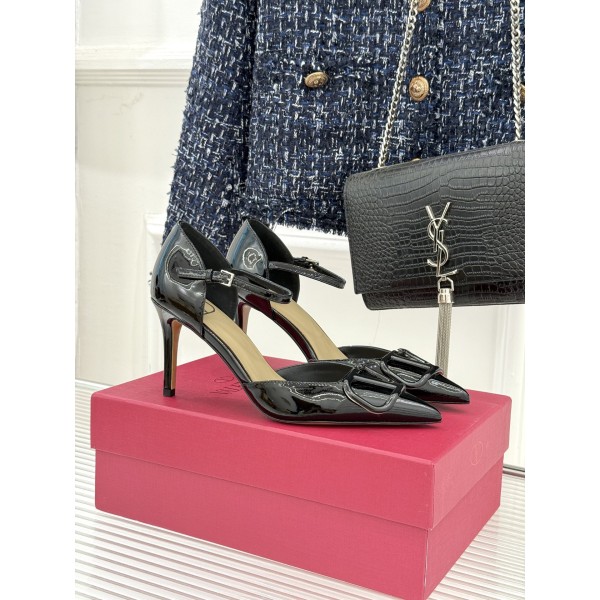 소재: 맞춤 제작 가죽 소재 사용 디자인: 브랜드 상징 빅 V 메탈 버클을 적용한 포인티드 토 및 오픈 구조 디자인 디테일: 진공 코팅 공법으로 제작된 메탈 V 로고 적용 내부: 인솔 포함 내부 전체 양가죽 사용 아웃솔: 이탈리아 수입 소가죽 아웃솔 적용 힐높이: 8cm 콘 힐 사이즈: 35 - 39 ㅡ #신발
