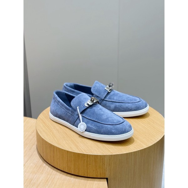 컨셉: 세련된 항해(마린) 스타일의 로퍼형 스니커즈 (해변 및 일상 겸용) 디테일: 에르메스 상징인 ‘샹달(Chaine d'Ancre)’ 버클과 가죽 꼬임 로프 장식 소재: 소가죽 외피 + 패브릭 콤비, 소가죽 안감으로 쾌적한 착용감 아웃솔: 가볍고 실용적인 고무 대밑창 스타일: 캐주얼하면서도 격식 있는 '프렌치 시크' 룩 완성 사이즈: 38 ~ 45 ㅡ #신발