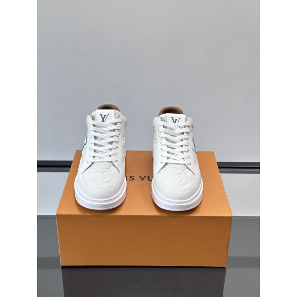 소재: 고급스러운 그레인 소가죽 바디 특징: 가벼운 두께감의 청키 러버 솔 + 테크니컬 가공 내피로 최상의 쿠션감 제공 디자인: 메인 컬러와 브라운 디테일의 조화, 측면 LV 로고 압인 포인트 스타일: 일상 캐주얼부터 비즈니스 룩까지 소화 가능한 미드탑 실루엣 사이즈: 38 ~ 45 ㅡ #신발