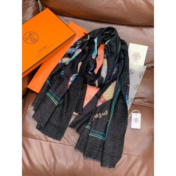 • 에르메스(HERMES) 패턴 캐시미어 롱 머플러 목도리 스카프