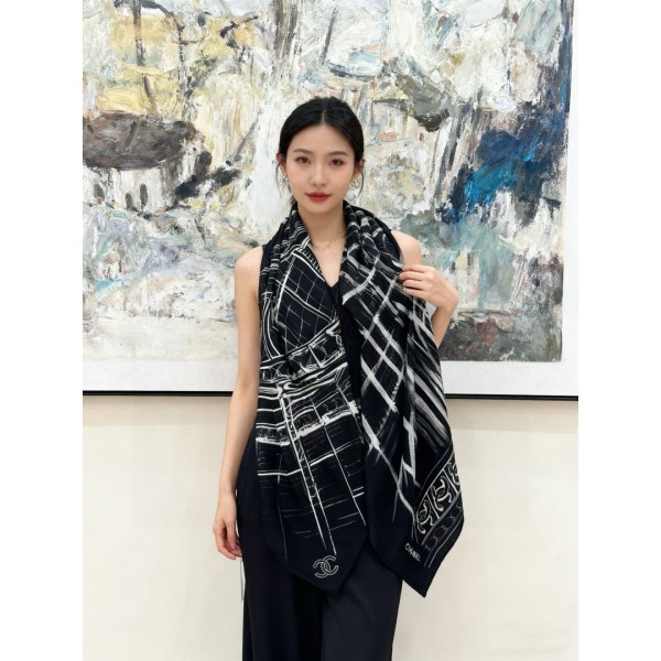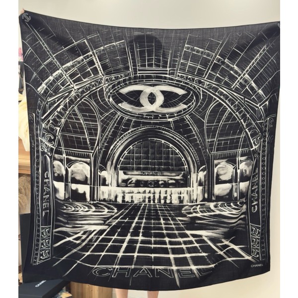 • 샤넬(CHANEL) 실크 캐시미어 숄 머플러 목도리 스카프