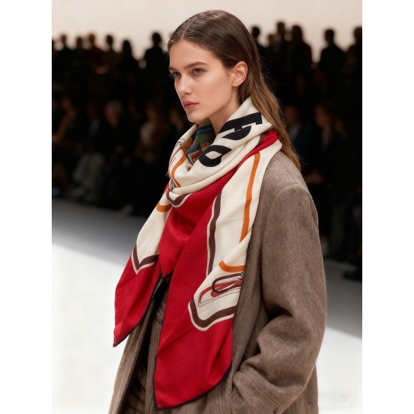 디자인: 안장 디테일과 승마 그래픽을 정교한 컬러 톤으로 표현해 브랜드의 마구 헤리티지를 반영한 디자인 패턴: 전체 GG 모노그램 프린트와 홀스빗 스트랩 모티프 프린트 조합 소재: 실크 30% / 캐시미어 70% 혼방 소재로 부드러운 촉감과 자연스러운 드레이프 연출 제작: 이탈리아 제작, 하단 수작업 스티치 마감 사이즈: 135cm × 136cm ㅡ #머플러