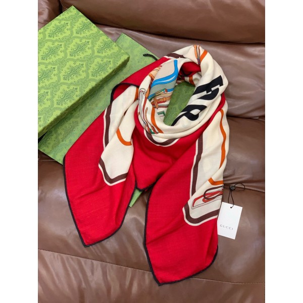 • 구찌(GUCCI) 승마 실크 캐시미어 숄 머플러 목도리 스카프