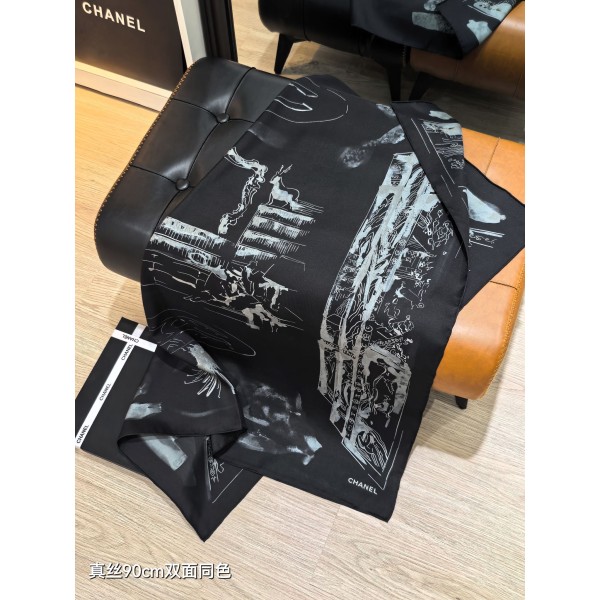 • 샤넬(CHANEL) 실크 트윌 스퀘어 머플러 목도리 스카프