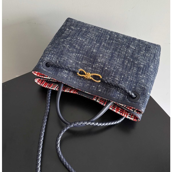데님과 양가죽의 조화로 고급스러운 레트로 무드를 자아내는 안디아모 데님 버전입니다. 모델번호: 836381 소재: 프리미엄 데님 캔버스 + 양가죽(램스킨) 인트레치아토 외부: 청량한 데님 블루와 가죽 믹스로 세련된 분위기 내부: 반전 매력의 비쉬 체크(Vichy) 양가죽 편직 안감 디테일: 시그니처인 동축 편직 숄더 스트랩과 골드 낫(Knot) 매듭 장식 특징: 격식 있는 자리부터 캐주얼한 룩까지 자연스럽게 어우러지는 디자인 사이즈: 35 * 25 * 11 cm (넉넉한 수납력의 중형 사이즈) ㅡ #가방