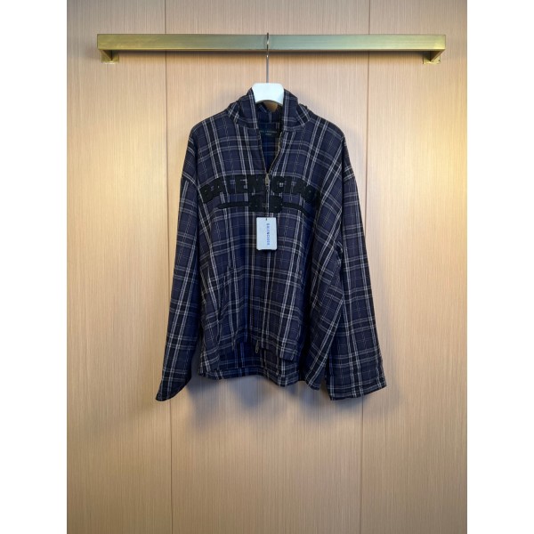 발렌시아가(Balenciaga) 퍼플 체크 집업 후드 자켓 의류 > 남성 아우터