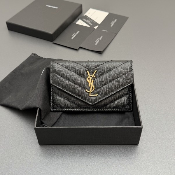 Saint Laurent YSL 생로랑 마틀라세 그레인 레더 플랩 지퍼 카드 지갑 - 블랙/금장 > 입생로랑