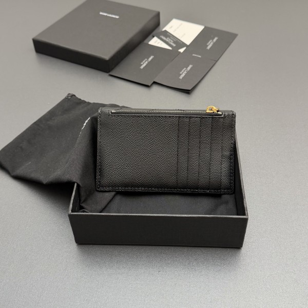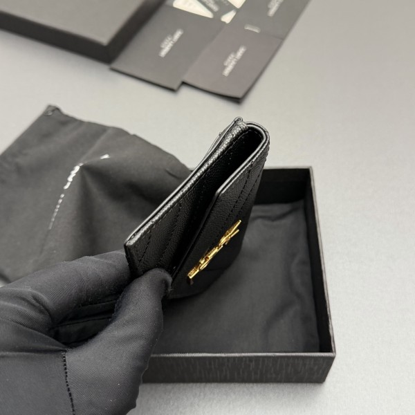 • Saint Laurent YSL 생로랑 마틀라세 그레인 레더 플랩 지퍼 카드 지갑 - 블랙/금장