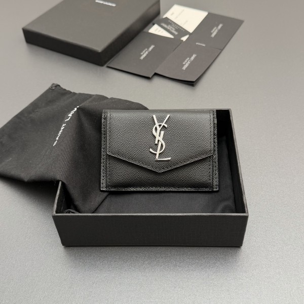 • Saint Laurent YSL 생로랑 업타운(UPTOWN) 그레인 레더 카드 지갑 - 블랙/은장