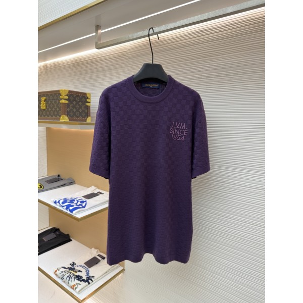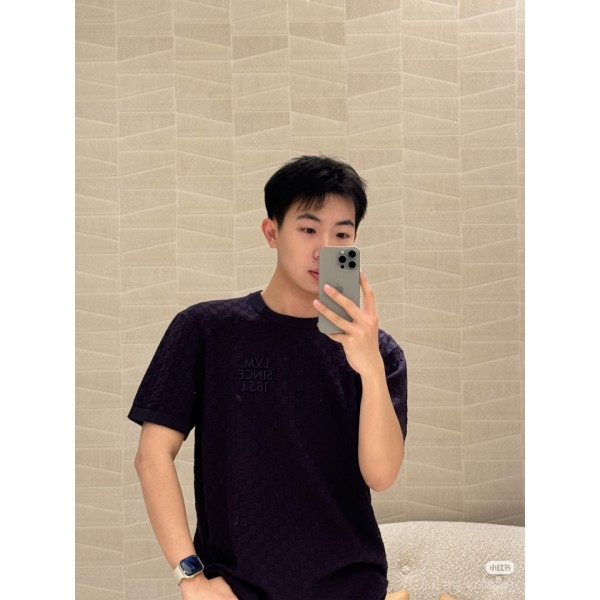 루이비통(LV) 레터 자수 체커보드 자카드 반소매 니트 의류 > 남성 TEE & TOP