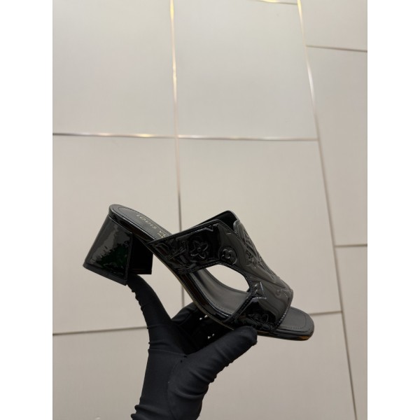 루이비통(LV) 엠보싱 로고 미들힐 뮬 슬리퍼 신발 > 힐/펌프스