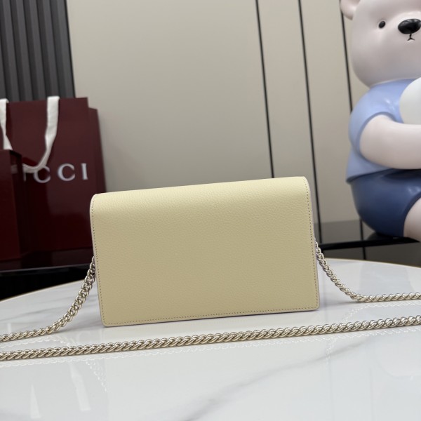 "전용 풀세트 구성" – 상큼한 연노랑 소가죽에 연보라 안감으로 반전 매력을 더한 실용적인 체인백(WOC)입니다. 디자인: 연노랑 가죽과 연금장(Light Gold) 더블 G 로고의 화사한 조화 포인트: 내부에 거울이 부착되어 있어 이동 중 메이크업 수정 용이 활용도: 탈부착 체인으로 숄더백, 크로스백, 클러치 3-way 연출 가능 수납: 카드 6칸, 지퍼 포켓, 오픈 칸 등 지갑 기능이 통합된 알찬 수납 사이즈: 20 * 12.5 * 4 cm (데일리 최적화 미니백 사이즈) ㅡ #가방