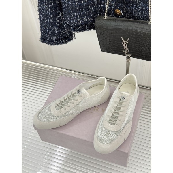 "플로럴 레이스와 부드러운 가죽 디테일이 조화를 이루는 모던 럭셔리 스니커즈" 소재: 플로럴 레이스 어퍼 사용 디테일: 레이스와 가죽 패널 믹스 디자인, 은은한 시스루 질감과 브랜드 슈즈텅 라벨 포인트 내부: 양가죽 인솔과 안감 적용으로 부드럽고 편안한 착화감 아웃솔: 오리지널 몰드 커스텀 논슬립 러버 아웃솔 핏: 가볍고 유연한 구조로 데일리 착용에 편안한 스니커즈 핏 스타일: 데님과 캐주얼룩은 물론 원피스와 매치해 스위트&쿨 무드 연출 가능 SIZE: 35, 36, 37, 38, 39, 40, 41 ㅡ #신발