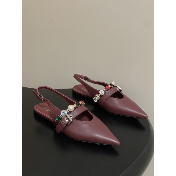 "주얼 체인과 모노그램 스트랩이 돋보이는 백스트랩 샌들" 소재: 소가죽 어퍼와 양가죽 인솔, 이탈리아 천연가죽 아웃솔로 제작 디테일: 모노그램 캔버스 벨트 스트랩과 주얼 체인 장식, 가죽 커버 힐과 조절 가능한 백스트랩·사각 버클 디테일 핏: 슬림한 포인티드 토 쉐입으로 다리 라인을 길어 보이게 연출하며 부드러운 가죽으로 편안한 착화감 스타일: 원피스·슬랙스·데님 등 다양한 스타일에 매치 가능한 데일리 및 세미포멀 샌들 굽높이: 플랫 SIZE: 35, 36, 37, 38, 39, 40, 41 ㅡ #신발