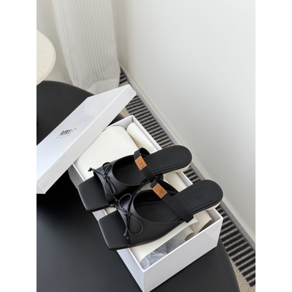 "리본 디테일과 스퀘어토 실루엣이 돋보이는 발레 무드 뮬 슈즈" 소재: 크랙 나파 카프스킨 슈즈 어퍼와 이탈리아 천연가죽 아웃솔로 제작 디테일: 볼드한 리본 장식과 백리스 뮬 디자인, 밴딩 스트랩으로 안정적인 착화감 핏: 스퀘어 토 라스트와 유연한 밴딩 구조로 발 모양에 편안하게 밀착 스타일: 데일리·통근·페미닌·캐주얼 룩에 매치하기 좋은 활용도 높은 뮬 슈즈 SIZE: 35,36,37,38,39 ㅡ #신발
