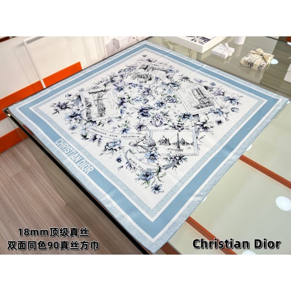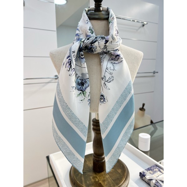 "로마의 감성을 담은 디올 클래식 실크 스카프" 소재: 화이트·블루 컬러의 이탈리아 제작 실크 트윌 100%로 부드럽고 고급스러운 텍스처 디테일: 피에트로 루포 디자인 Souvenir de Rome 프린트, Christian Dior 로고 포인트 스타일: 목에 두르거나 헤어 스카프로 활용 가능한 클래식 디자인, 로마 건축과 전원 풍경을 조화롭게 담은 패턴 사이즈: 90cm ㅡ #스카프