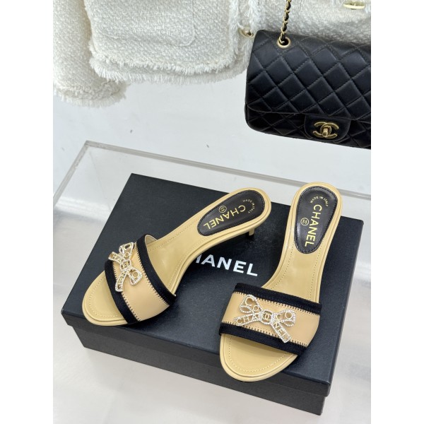 Chanel 샤넬 스톤 더블C 리본 키튼 힐 슬리퍼 샌들 신발 > 샌들/슬리퍼