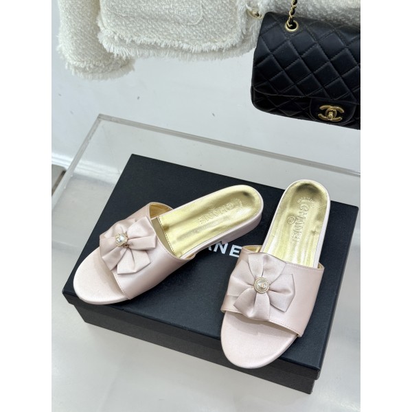 Chanel 샤넬 26C 더블 리본 스톤 로고 플랫 슬리퍼 샌들 신발 > 샌들/슬리퍼