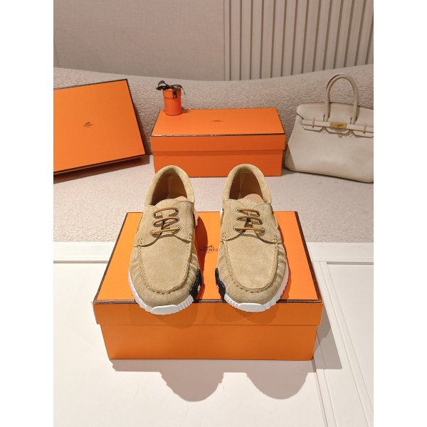 "조절 가능한 레이스업과 H 로고 아웃솔이 포인트인 커플 레저 슈즈" 소재: 실크 가공 소가죽 스웨이드 어퍼로 제작. 디테일: 레이스업 디자인으로 착용 시 핏 조절 가능, 아웃솔에 H 레터링 디테일 적용. 내피: 수입 양가죽 안감 사용. 아웃솔: TPU + 러버 폼 소재 몰드창 적용, 안정적인 착화감 제공. 굽높이: 약 3cm. SIZE: 35,36,37,38,39,40,41,42,43,44,45 ㅡ #신발