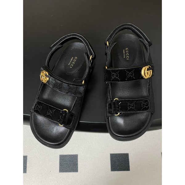 특징: 화려한 풀 커스텀 수전(라인스톤) 장식과 메탈 더블 G 로고의 조화 디테일: 실용적인 벨크로(찍찍이) 스트랩 설계로 편안한 착화감과 럭셔리한 무드 동시 선사 소재: 맞춤형 실크 벨벳 핫픽스 외피 + 양가죽 내피 + 소가죽 중창 바닥: 정품 1:1 복각 더블 G 로고 각인 고무 아웃솔 포인트: 눈부신 반짝임으로 휴양지나 일상 어디서든 주인공이 되는 하이엔드 샌들 사이즈: 35-42 ㅡ #신발