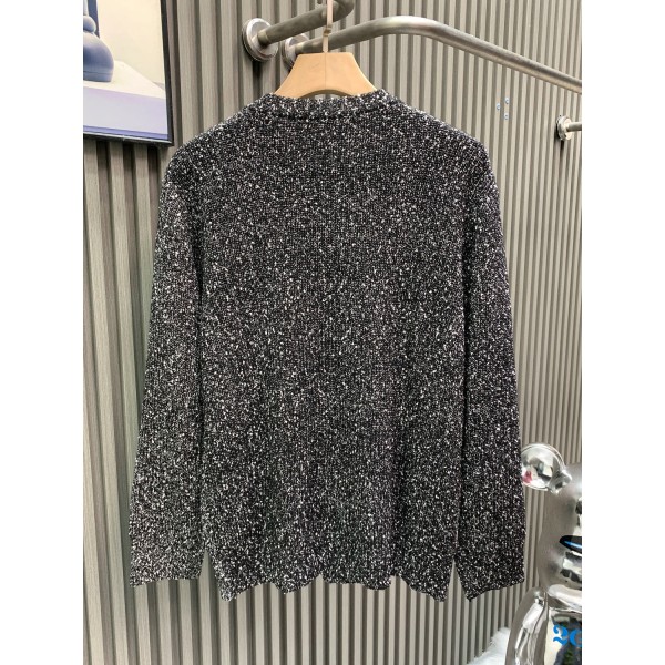 “탈부착 브로치와 래글런 슬리브가 적용된 라운드 니트” 소재: 니트 조직 원단 사용, 은은한 펄감이 느껴지는 텍스처 디테일: 골드 톤 합금 브로치 장식(탈부착 가능), 래글런 슬리브 구조, 은은한 반짝임이 표현된 표면 마감 핏: 어깨선이 자연스럽게 떨어지는 래글런 실루엣, 남녀공용 착용 가능 스타일: 26SS 시즌 모델, 단독 착용만으로 포인트가 되는 니트 아이템 SIZE: S, M, L, XL, XXL ㅡ #의류