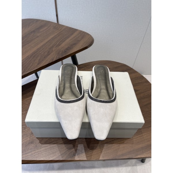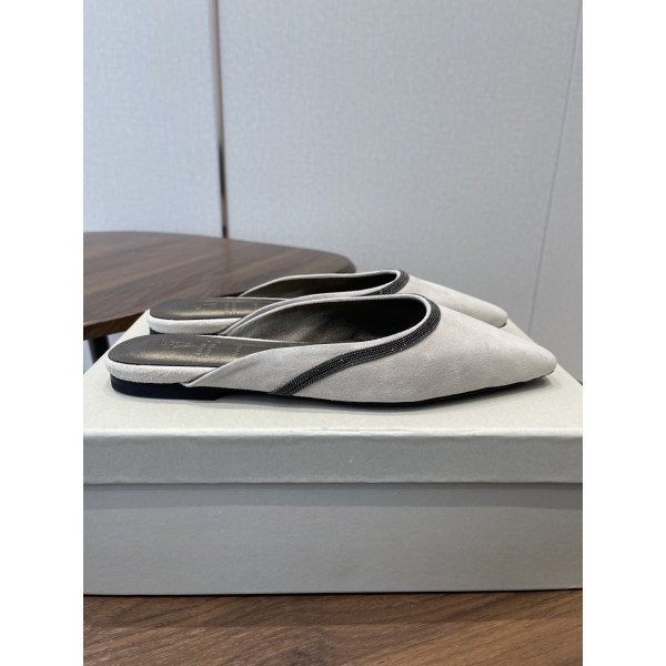 Brunello Cucinelli BC 브루넬로 쿠치넬리 체인 스퀘어토 뮬 슬리퍼 신발 > 샌들/슬리퍼